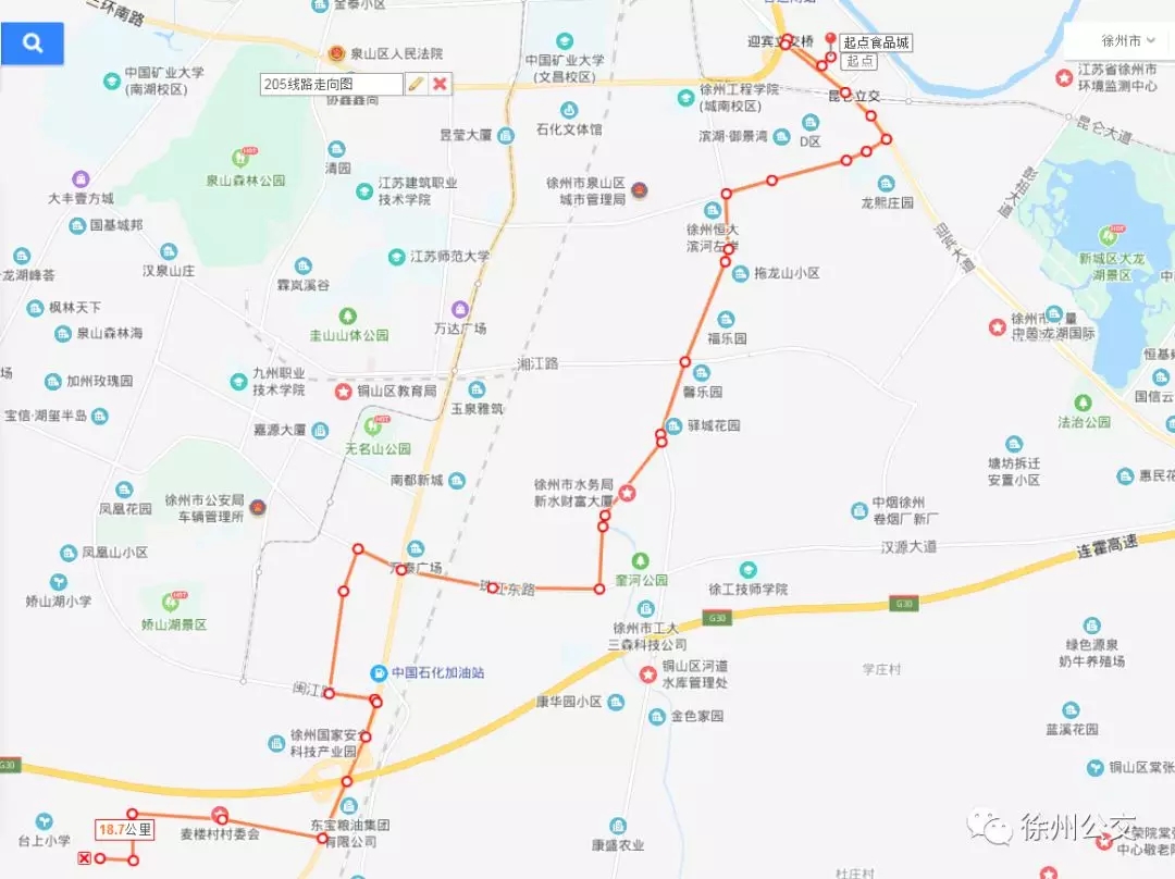具體??空军c(diǎn):淮海新能源、嘉樂園、麥樓村、淮海國際城、安科園、格利爾、東方傳動、徐鍛科技產(chǎn)業(yè)園、財發(fā)鋁業(yè)、汽車產(chǎn)業(yè)園、醫(yī)藥產(chǎn)業(yè)園、高新區(qū)管委會、精密制造、驛城村、馨樂園、福樂園、東南郡小區(qū)、徐州中專、淮海文博園(食品城)。