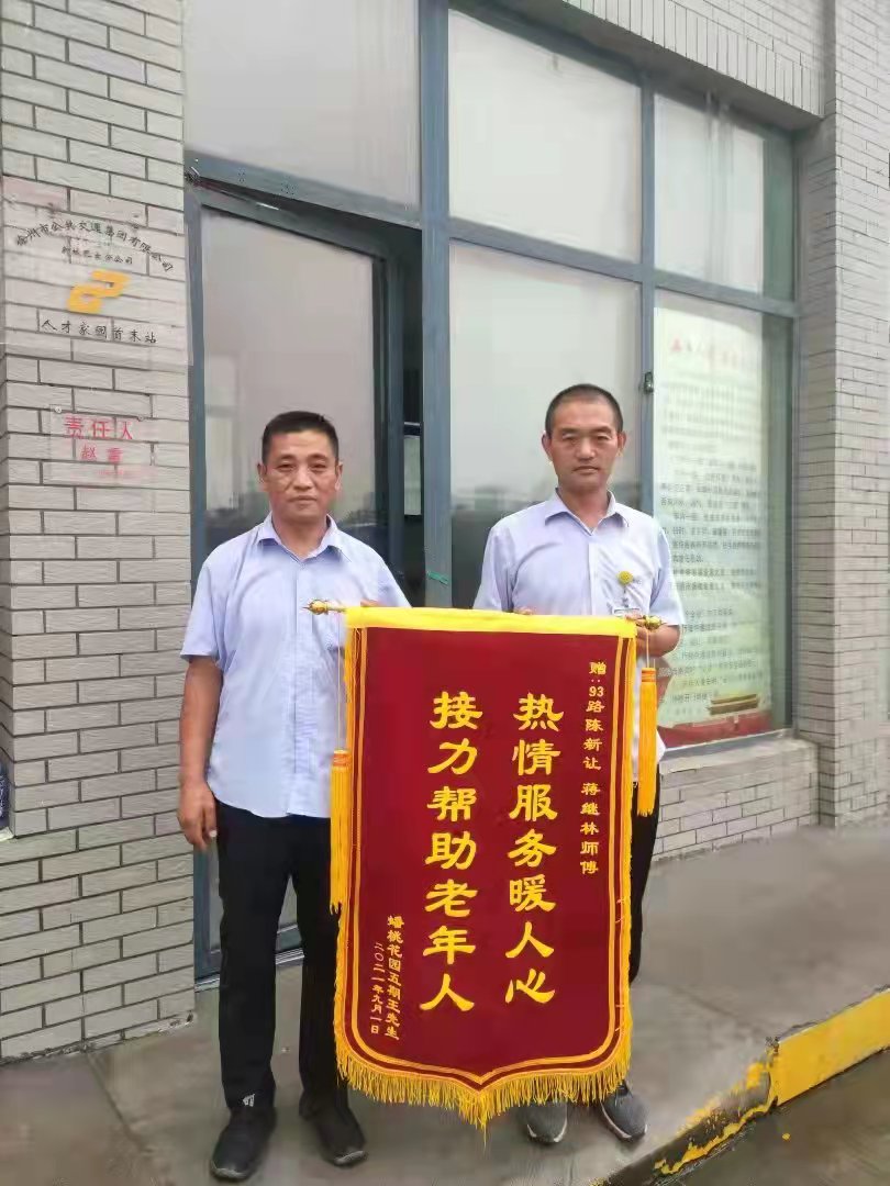 91日下午,在蟠桃花園站臺(tái)站有一位年邁的老人,手里緊緊握著一面書有熱情服務(wù)暖人心,接力幫助老年人的錦旗,在雨中等待著93路駕駛員陳新讓、蔣繼林的車輛,想要把這面飽含誠(chéng)摯謝意的禮物親手送給兩位師傅。