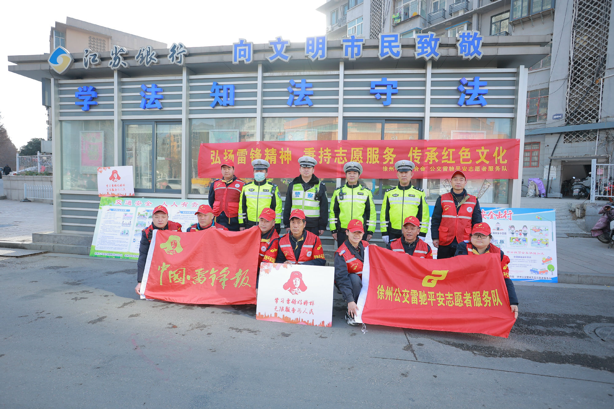 32日早上出行早高峰時段,徐州公交雷馳平安志愿者服務隊組織隊員們,協(xié)同交警一起在復興路與銅山路繁華交叉路口疏導交通。