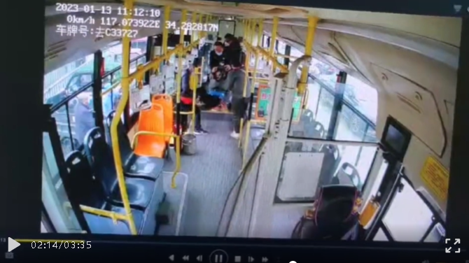 1月13日上午11:00左右,8路駕駛員薦彬駕駛著1969號車輛行駛至霸王山水泥廠時,突然有乘客大喊:“師傅師傅,我家里人突然抽搐了,師傅麻煩你去醫(yī)院!”“好,好,別著急,車內(nèi)的乘客幫忙打下120!”