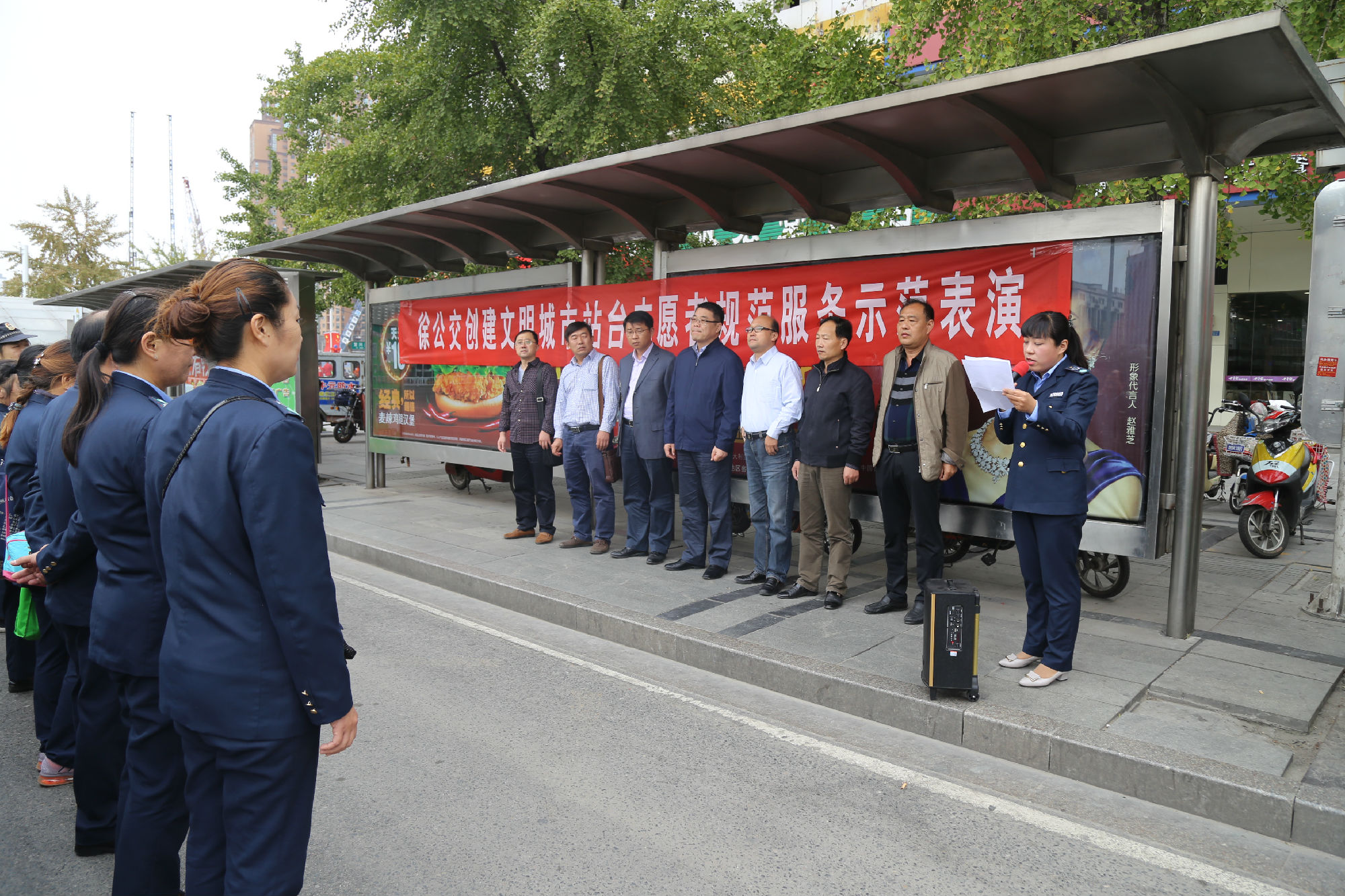 為進(jìn)一步規(guī)范站臺服務(wù)引導(dǎo)工作,不斷推動文明城市創(chuàng)建順利進(jìn)行,10月9日上午,公司在徐州站主廣場舉行了一次公交站臺秩序規(guī)范服務(wù)示范表演。團(tuán)市委副書記夏友峰、運管處客運科科長陳福升、以及市創(chuàng)建辦交通秩序二組三位領(lǐng)導(dǎo)蒞臨觀摩。服務(wù)督導(dǎo)隊34名站臺志愿者參加了示范表演。