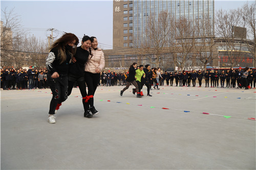 “參賽隊員各就各位!裁判員準備計時!”運動會主持人一聲令下,首先開始比拼的項目是需要隊員齊心協(xié)力,發(fā)揚合作精神的“三人四足接力賽”,三人一組紅繩綁腿齊步走,每隊12名參賽隊員,比的是速度,更是勁兒往一處使的同心合力?!凹佑?!加油?。 薄耙欢?!一二!”比賽場上運動員的號子聲和場外女工們的加油聲、歡笑聲交織一起,此起彼伏。