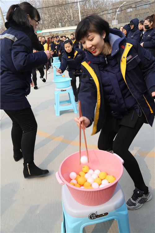 “穿針引線接力賽”和“夾乒乓球比賽”比較有意思,項目充分展現(xiàn)了女工們心思細膩的一面和嫻熟的家務活兒功底。手捏繡花針,穿針引線,筷子夾乒乓球,分明是練“炸丸子”嘛。參賽隊員情緒飽滿,勠力同心,密切配合,氣氛歡快熱烈而緊張,一場場精彩的比拼把運動會推向一個又一個高潮。尤其是最后一項“搶板凳比賽”,看誰反應快,比誰會“搶”,快樂有趣,更是引來一次次加油喝彩,一波又一波歡聲笑語!