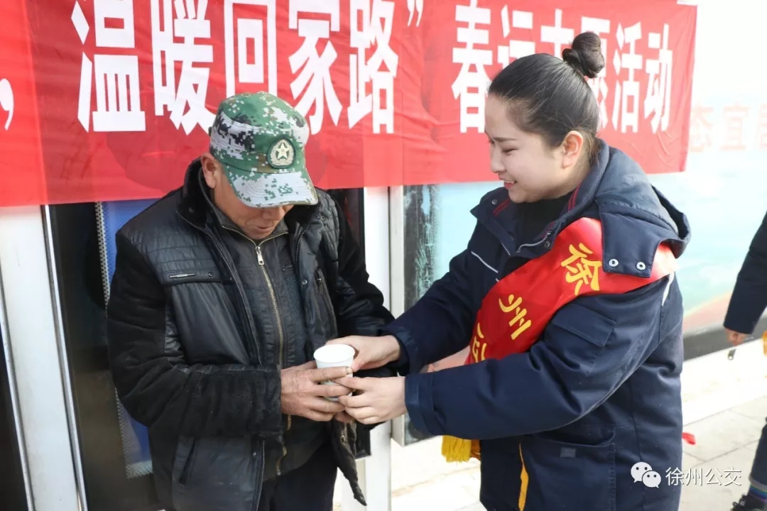 熱情的微笑,真誠的服務(wù),讓歸家的乘客感受到了徐州的溫暖。其中,兆通公司組織志愿者走上公交車,裝扮年味車廂;順通公司提早準(zhǔn)備了50余份“?!弊执盎ê蜔艋\,免費送給市民和準(zhǔn)備返鄉(xiāng)的旅客;新城公司、保修公司向乘客宣傳平安春運知識,讓乘客走得安全、放心。