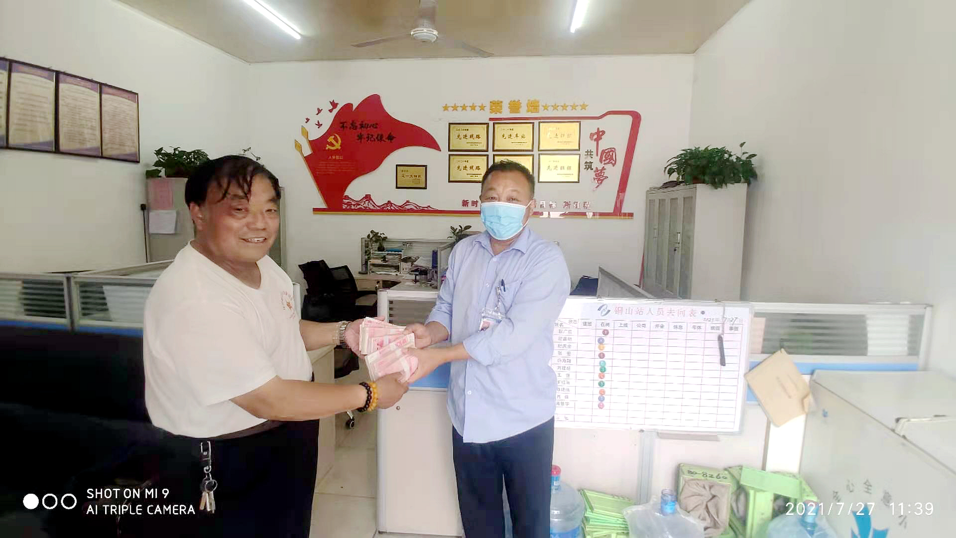 7月27日11時(shí)許,83路線駕駛員彭光明駕駛著8235號車回到銅山汽車站,在車廂內(nèi)清掃消毒時(shí),發(fā)現(xiàn)一個(gè)乘客遺失的紅色布包,打開布包發(fā)現(xiàn)里面全是打捆的現(xiàn)金,共計(jì)6萬元。彭師傅當(dāng)即將布包交到車站值班室。