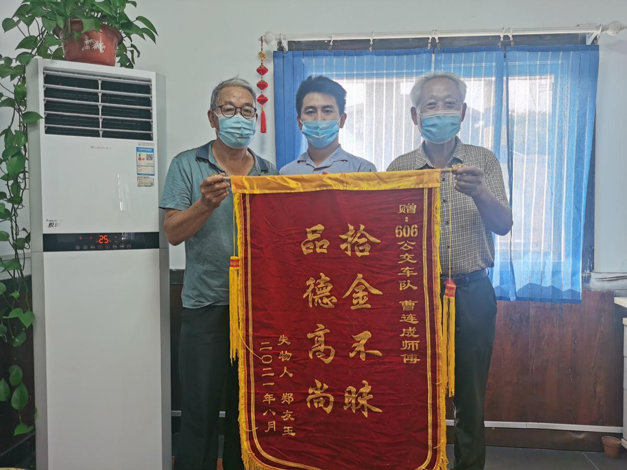 830日中午11點左右,市民鄭先生與同伴在大福源乘坐606路公交車趕往九七醫(yī)院就醫(yī),到醫(yī)院后發(fā)現(xiàn)錢包丟,鄭先生萬分著急,在同伴的提醒下,他來到606路韓山調(diào)度室尋找失物。果不其然,鄭先生的錢包被駕駛員曹連成師傅送到調(diào)度室妥善保管。鄭先生萬分感謝說道:錢包里除了現(xiàn)金和各類銀行卡外,還有醫(yī)???、社保卡,補辦十分麻煩,咱們司機(jī)師傅真是幫了大忙。”91日,鄭先生特意送來錦旗表達(dá)謝意。