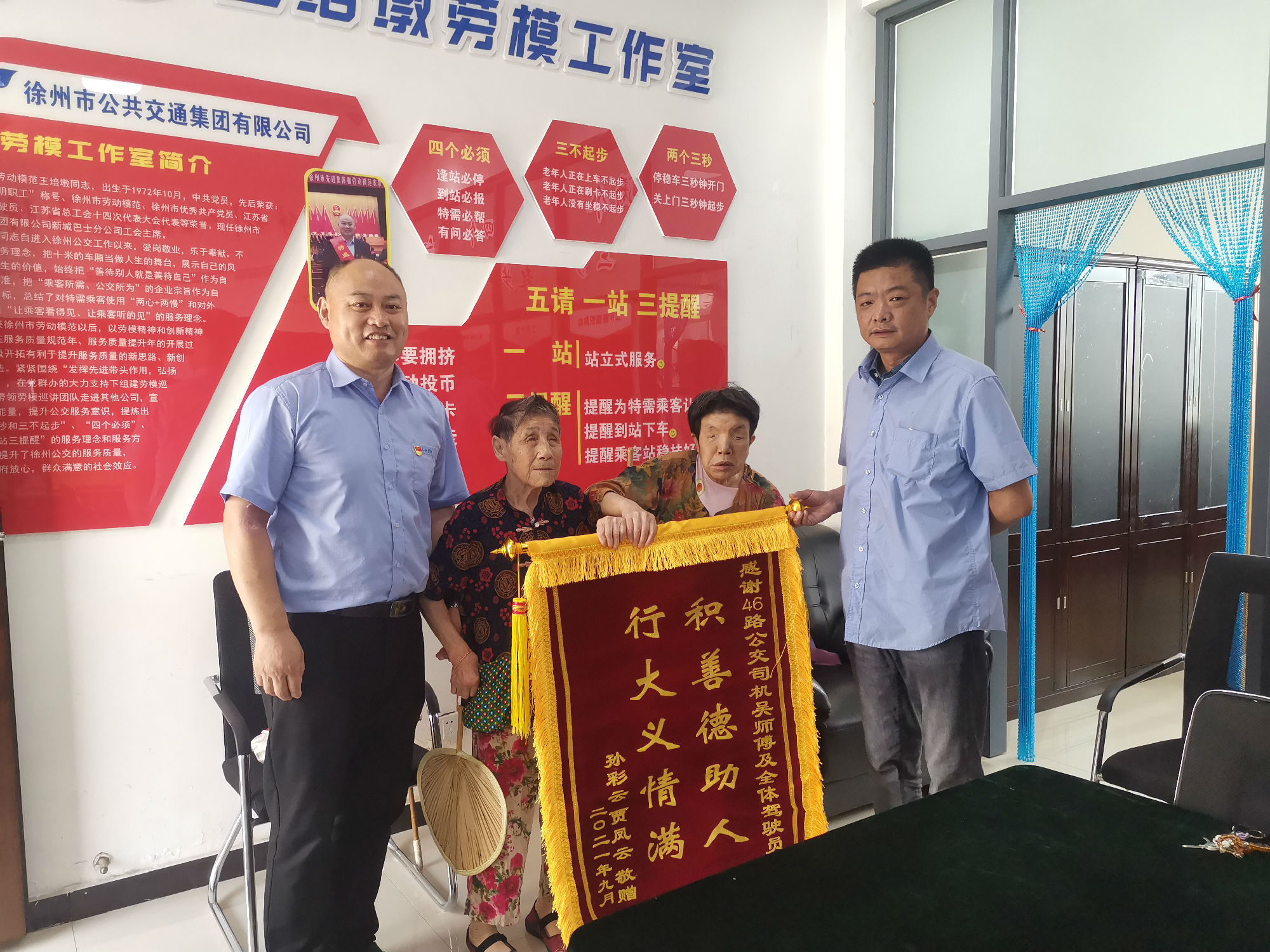 在國慶節(jié)的前一天,新城公司接待了兩位特殊的老人,她們手里拿著導(dǎo)盲棒,走路顫顫巍巍的,懷里緊緊抱著一面嶄新的錦旗。