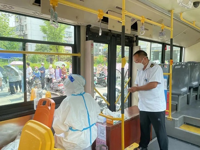 “排好隊(duì),保持一米線距離,準(zhǔn)備好核酸檢測碼。”1路駕駛員黃勇在烈日下維護(hù)核酸檢測現(xiàn)場秩序,看到排隊(duì)檢測的市民們在太陽下曬著,他主動將臨時(shí)棚移動到等待區(qū),讓排隊(duì)的市民不被太陽爆曬。排隊(duì)等待檢測人員少時(shí),他又主動幫助醫(yī)護(hù)人員整理相關(guān)物品,“黃師傅人老實(shí)又勤快,一刻也閑不住,我們都喜歡和他搭檔。”社區(qū)工作人員說道。