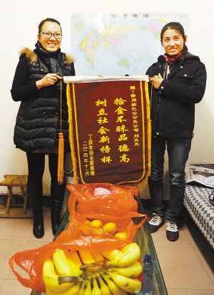 10月17日,乘客丁女士將“拾金不昧品德高、樹(shù)立社會(huì)新榜樣”的錦旗送到8路駕駛員劉元元和車隊(duì)領(lǐng)導(dǎo)手中。