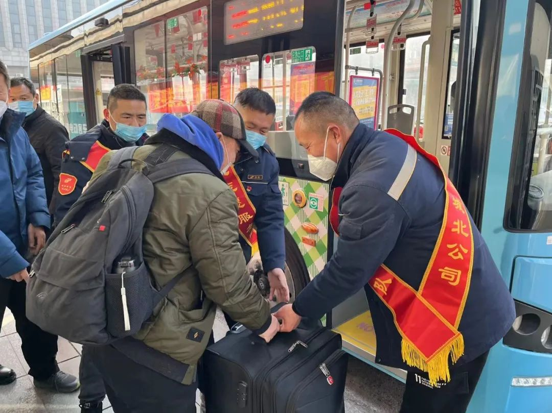 春運期間,城北巴士公司黨支部組織愛心服務(wù)隊和黨員先鋒崗在徐州站等客流密集站點開展志愿服務(wù),維持現(xiàn)場乘車秩序,幫助乘客搬運行李,開展“三品”檢查,他們以嚴謹?shù)淖黠L、熱情的態(tài)度、溫暖的話語,贏得了乘客廣泛好評。此外,文明引導員在站點詳細記錄客流情況,提醒乘客戴好口罩,有序上車,并傾聽乘客反饋意見。