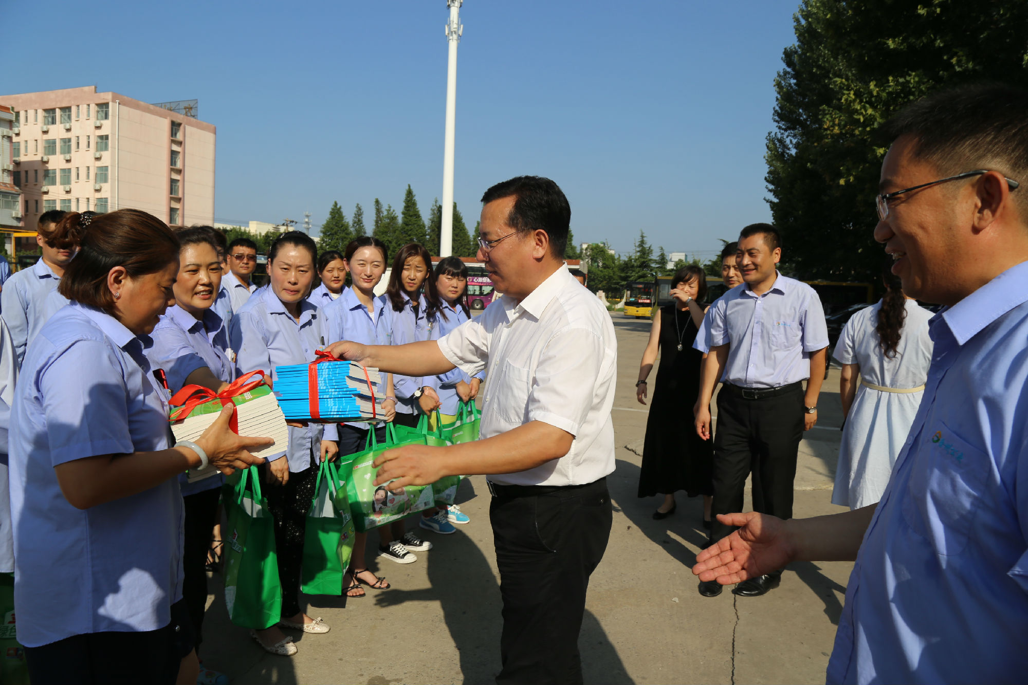 今年我市持續(xù)高溫,酷暑難當,5600名公交員工堅守營運一線保障運營,為市民提供了清涼、溫馨的出行服務,廣受市民贊譽。8月9日下午,市總工會副主席劉洪印、市交通運輸局工會副主席巨玲一行,在公司調研員張同剛等人的陪同下,冒著高溫來到徐州新區(qū)公交車場,看望和慰問公交一線職工,送來了消暑慰問品和市領導的殷切關懷。
